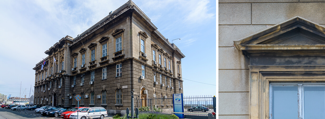 The administrative building of the Port of Rijeka was built on the pier Zichy in 1885 at the site of the demolished port warehouse no. 1, according to the project by Josip Hubert. The palace was first used for the needs of the Royal Naval Administration under the Hungarian government. The building façades are decorated with historicistic, late Renaissance elements. The main entrance faces the port pier and the sea. The interior of the building radiates with harmony, and the stairca ...