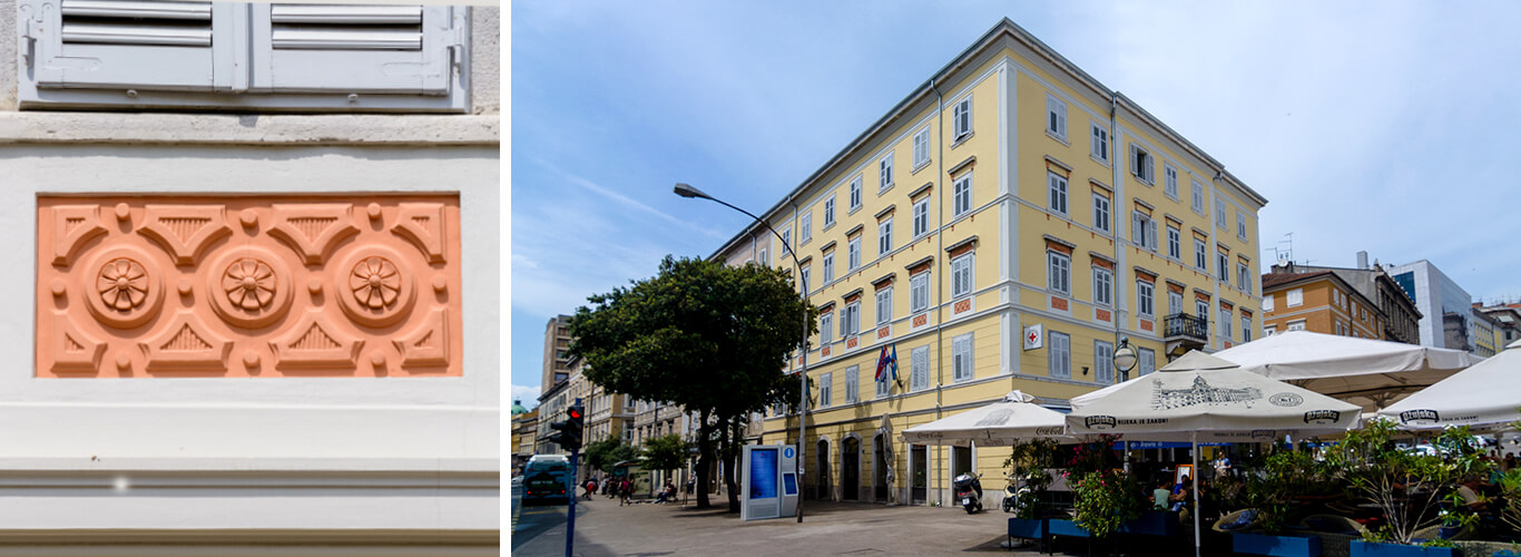 Hotel Jadran izgrađen je za naručitelja Konzorcij F. Tomašić i drugovi 1914. u stilu secesije, s pripadnim kupalištem. Do danas je zadržao izvornu namjenu ugostiteljskog objekta. Ideja za gradnju kupališta i smještajnog objekta na Pećinama, Sušak, pojavljuje se već 1911. godine. No kako je uprava grada odugovlačila s izdavanjem građevinske dozvole, a i zbog uređivanja morske obale, izgradnja se objekta odužila. Iako je to bila velika investicija i proje ...