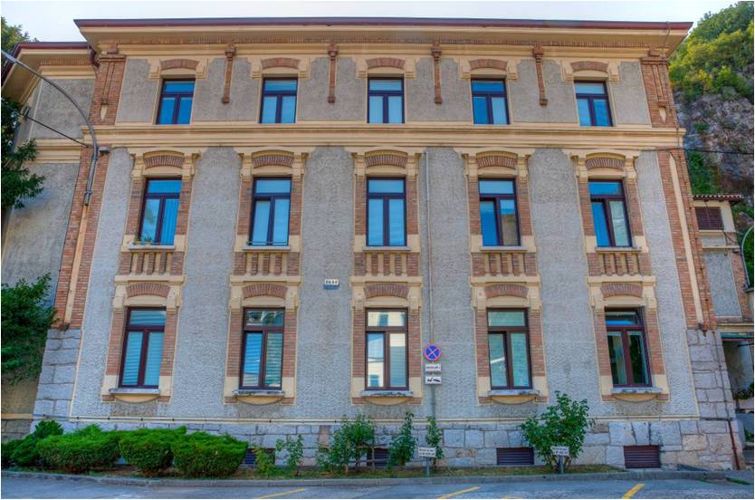 The administration building of the power plant was designed by Giovanni Rubinich and built in 1909. The building has a simple square floor plan, consisting of a ground floor and two upper floors. The floors were divided according to functional needs; the ground floor housed technical offices and the first floor the accounting department, while the second floor contained apartments for principal engineers. The business/residential function is emphasized with a moulded cornice, which also separate ...