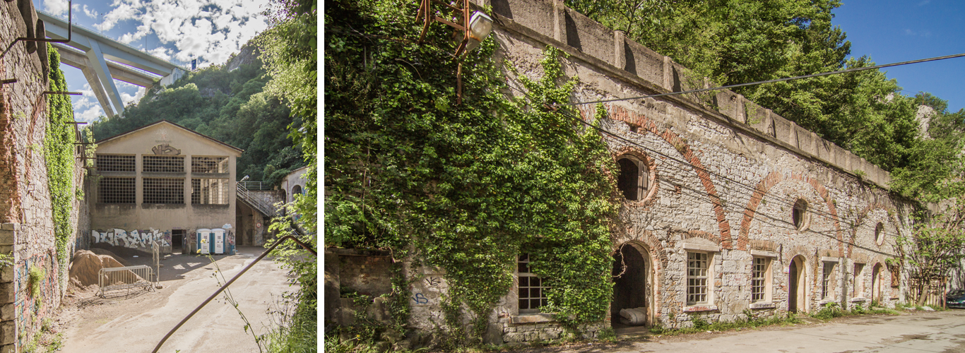 These two buildings were built separately, but they were subsequently altered so as to function as a unique space. They were built between 1821 and 1827, while the roof was reconstructed around 1927/28. In the initial phase of construction, brick and stone with lime mortar were used. Brickwork with cement mortar and reinforced concrete is visible in later alterations. The building was originally designed as a hall for sorting and storing rags, but it became part of the plant later. The importanc ...