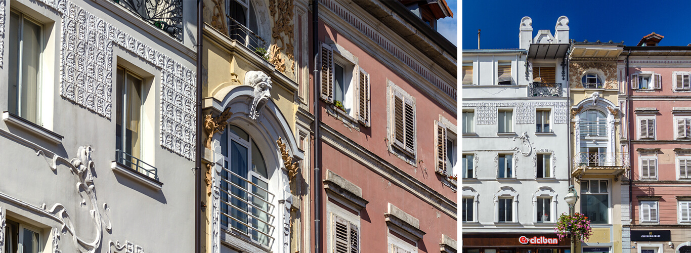 The house Milcenich-Cerniak was built (adapted) in 1905 according to a modern project by Emilio Ambrosini. Ambrosini continued with Art Nuveau motifs by designing alterations on the edifice which, according to his sketches, relied upon the already arranged house Schittar. He introduced wide modern windows throughout the height of the floor, floral and leaf-like decorations, round windows which brought a spirit of Vienna Art Nuveau to the area. In accordance with the idea of preserv ...