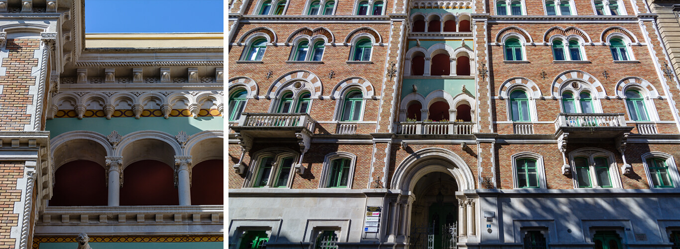 The house Sirius was built in 1912 according to the designs by Giovanni Rubinich. It is famous as the seat of the freemasons in Rijeka, which is witnessed by the decoration on the façade selected by Rubinich. Rubinich himself was a member of the loggia. This multiple-storey building is abundant with interesting façade sculpture inspired by the freemason symbolism – the lizard, a winged creature, a whale, a lion, the swastika, hearts, various floral details. The entran ...