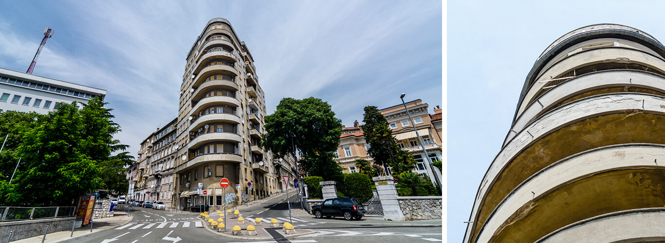 The popularly called Small Skyscraper was built in 1939 according to the project by a young architect Raoul Puhali, who was also the commissioner. Raoul Puhali was born in Pula in 1904, from where he soon moved to Rijeka where he lived and worked after the studies in Vienna. After the Second World War, he lost all his property, which is why he moved to Trieste where he remained for the rest of his life. The Small Skyscraper is one of his first works, while some of his other works include the IN ...